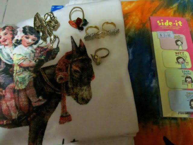 |  |  | Loot! Rings, stationary and lovely tops. |